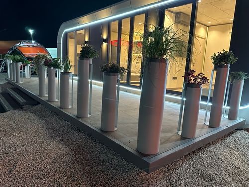 The outdoor area can be further customised, including additional patios, pergolas, or parking spaces, all designed to blend with the style of Infinity-66. The exterior facade can also be personalized with a range of materials and finishes, allowing to achieve a unique look.